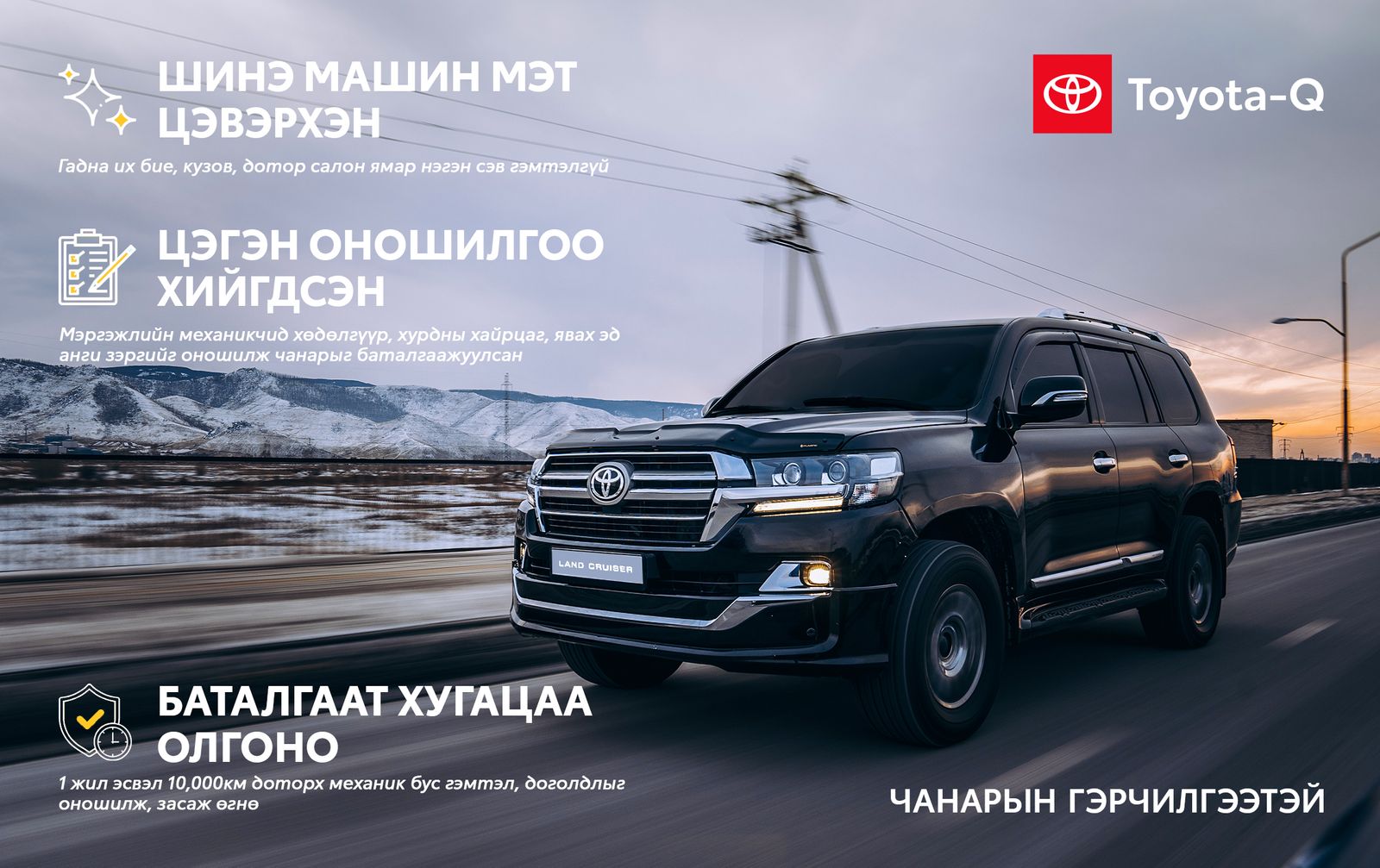 Toyota-Q үйлчилгээний хүрээнд шинэ автомашины урьдчилгаанд тооцуулан борлуулж болно. |